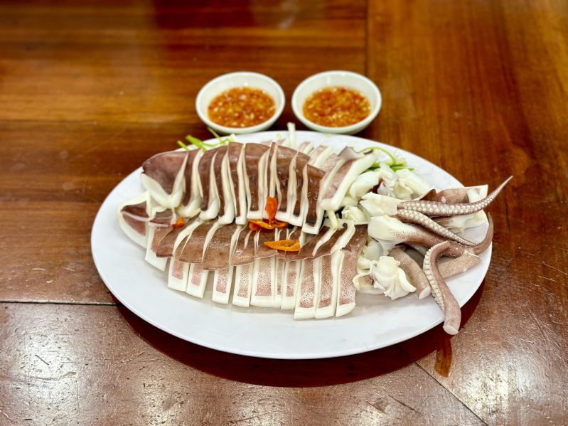 Sau một hoặc hai giờ tham quan Ngũ Hành Sơn, hãy quay lại con đường ven biển và thưởng thức bữa trưa hải sản tại quán Bé Mặn. Chuyên gia của Michelin gợi ý món không thể bỏ qua ở đây là mực hấp gừng và hành lá ăn kèm rau xà lách.