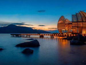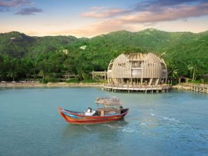 Là sự kết hợp đầy nghệ thuật giữa thiên nhiên, thiết kế và sự sang trọng, An Lâm Retreats Ninh Vân Bay được mệnh danh là resort nổi trên biển độc đáo nhất Việt Nam, với thiết kế ấn tượng nằm trên những mỏm đá nhô ra biển, kết hợp sử dụng nguyên liệu thân thiện với môi trường như gỗ, tre; nhìn từ xa, nhà hàng Sen như một bông hoa sen nở trên mặt biển với vẻ đẹp thuần khiết, nguyên sơ, làm say lòng biết bao du khách.