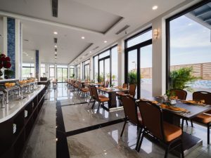 Chúng tôi cũng có một nhà hàng sang trọng, phục vụ những món ăn đặc sản của vùng biển và quốc tế. Bạn có thể thưởng thức hải sản tươi ngon, cùng với rượu vang ngon và cocktail độc đáo.