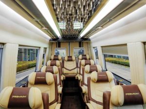 Không gian rộng rãi, tiện nghi như khoang máy bay hạng nhất – phù hợp cho đoàn khách doanh nghiệp, sự kiện. -