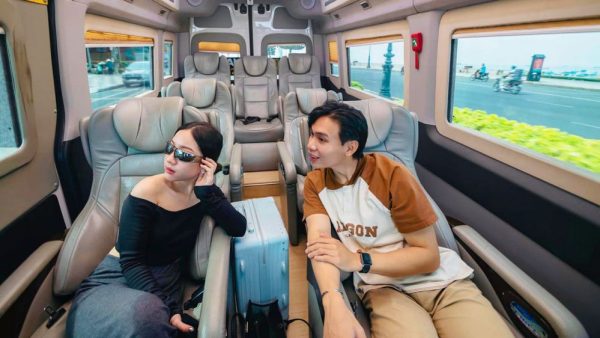Ghế bọc da cao cấp, nội thất gỗ, màn hình giải trí riêng, wifi, cổng sạc USB. -