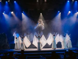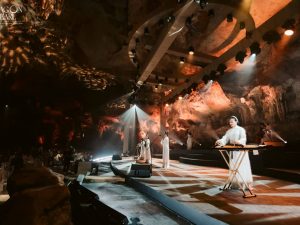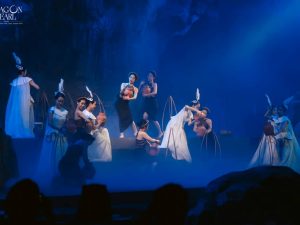 - Lấy cảm hứng từ truyền thuyết Mẹ Rồng, vở diễn “Đi tìm Dấu Ngọc” kể câu chuyện về lòng dũng cảm và khát vọng hòa bình. Sự hòa quyện giữa công nghệ và vẻ đẹp kỳ vĩ của Hang Ngọc Rồng tạo nên những khoảnh khắc mãn nhãn, lôi cuốn.