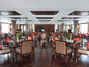 Thưởng thức bữa sáng tại nhà hàng trong khi du thuyền Ambassador quay về cảng.