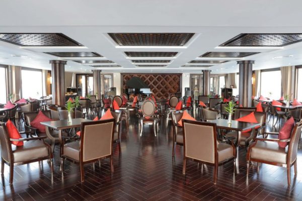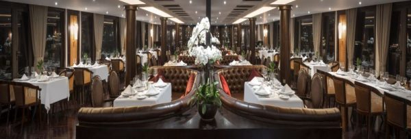 Thưởng thức bữa sáng tại nhà hàng trong khi du thuyền Ambassador quay về cảng.