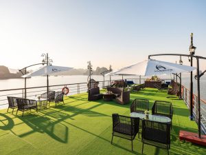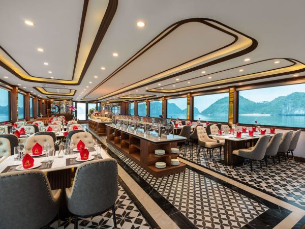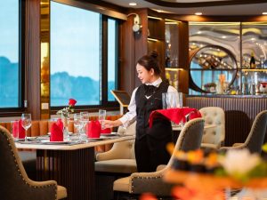 11:30 – 12:00: Quý khách có mặt tại Cảng tàu Quốc Tế Hạ Long, Ambrose Cruises chào đón bạn với nụ cười thân thiện nhất. Hãy tận hưởng nước uống chào mừng và khăn lạnh khi hướng dẫn và thuyền trưởng giới thiệu tóm tắt về hành trình.