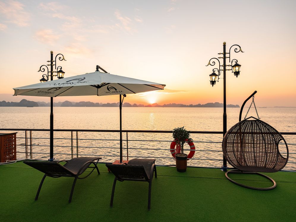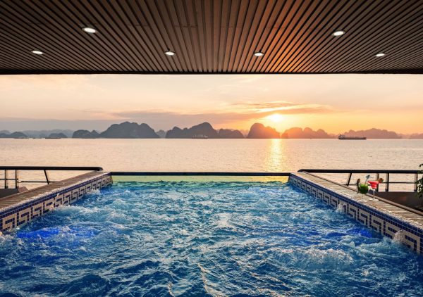16:30: Quý khách quay trở lại tàu, để thưởng thức tiệc trà chiều. Trong bữa tiệc có rất nhiều sự nữa chọn cho quý khách (bánh ngọt, hoa quả, trà….). Quý khách có thể vừa đắm mình trong bể tắm và thưởng thức tiệc trà nhẹ, hoặc là ngắm hoàng hôn trên sundeck.
