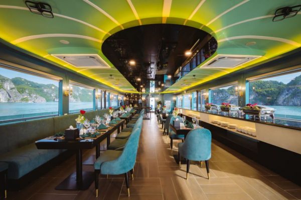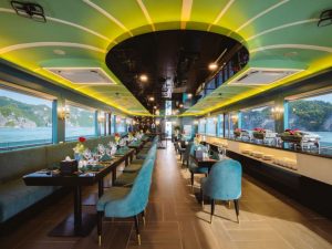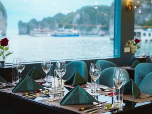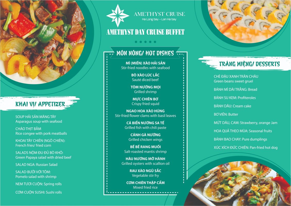 Du khách thưởng thức bữa trưa Buffet cao cấp với những món ăn Hải sản tươi ngon nổi  tiếng của Quảng Ninh cũng như các món ăn truyền thống của Việt Nam.