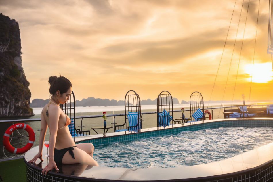 -Các hoạt động trên tàu: Sunset party, bể sục Jacuzzi.
