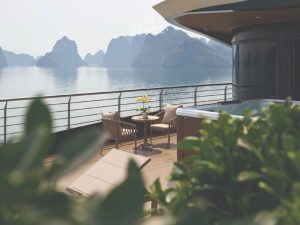 - Sử dụng bể bơi bốn mùa, bể sục jacuzzi phía mũi du thuyền