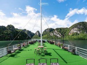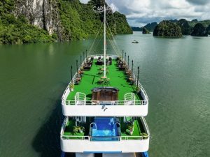 - Du thuyền trong ngày sang trọng và hiện đại nhất trên vịnh Hạ Long hiện nay với bế sục Jacuzzi 4 mùa, 6 phòng tắm tráng, lan can hoàn toàn bằng kính không che chắn tầm nhìn, tàu truyền tải có máy điều hòa nhiệt độ
