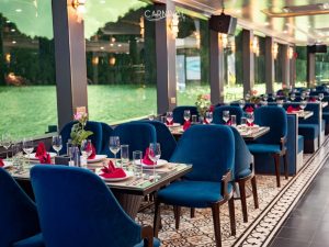 11:10 – 12:10: Du khách thưởng thức bữa trưa cao cấp với những món ăn Hải sản tươi ngon nổi tiếng của Quảng Ninh cũng như các món ăn truyền thống của Việt Nam. Đặc biệt, du khách sẽ được thưởng thức tiết mục biểu diễn nhạc cụ dân tộc đặc sắc (Áp dụng từ 30 khách trở lên)