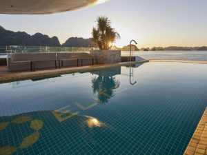 - Phòng nghỉ trên du thuyền sang trọng và bể bơi dát vàng