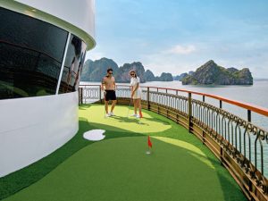 Tham gia các hoạt động giải trí buổi tối trên tàu như xem phim tại nhà hàng, chơi bài, cá ngựa, domino dịch vụ mát-xa. Quý khách cũng có thể thử vận may khi câu mực với sự giúp đỡ của đội tàu.