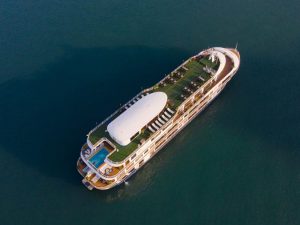 Quý khách sẽ di chuyển tới du thuyền Mon Chéri bằng tàu truyền tải, quý khách được mời đồ uống chào đón và dùng khăn. Quản lý du thuyền sẽ phổ biến chung về các quy định an toàn trước khi quý khách nhận phòng. Tàu Mon Chéri khởi hành, quý khách sẽ dùng bữa trưa tại khu vực nhà hàng và chiêm ngưỡng vẻ đẹp nổi tiếng hữu tình trong khi du thuyền di chuyển trên vịnh Lan Hạ – một trong những vịnh đẹp nhất thế giới.