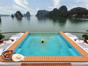 Thưởng thức bữa tối lãng mạn tại nhà hàng trên du thuyền.