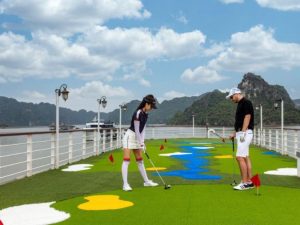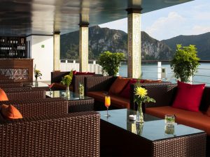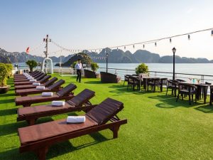 Quý khách tận hưởng cuộc sống về đêm của vịnh Hạ Long từ trên boong tàu. Đắm chìm trong âm nhạc, thưởng thức đồ uống từ quầy bar. Để tham gia trải nghiệm hoạt động câu mực đêm, quý khách vui lòng liên hệ quản lý để được hỗ trợ cung cấp những vật dụng cần thiết.