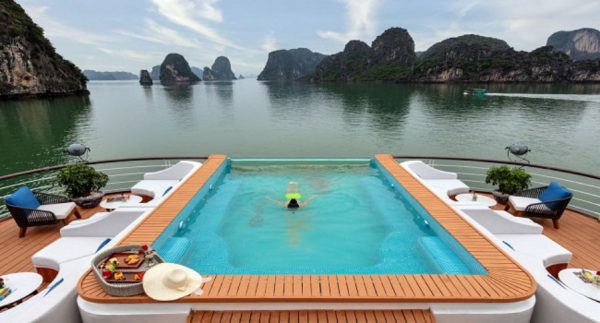 Thưởng thức bữa tối lãng mạn tại nhà hàng trên du thuyền.