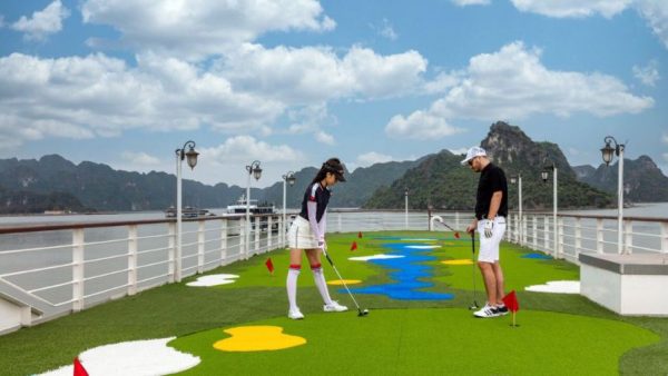 Tàu ghé thăm khu vực Hang Sáng Tối nổi tiếng với vẻ đẹp tự nhiên, hoang sơ cùng phong cảnh nên thơ, cuốn hút của Vịnh Lan Hạ. Đây cũng là thời gian tuyệt vời tham gia những hoạt động ngoài trời gần gũi với thiên nhiên như chèo thuyền kayak hoặc đi đò tay khám phá bảo tàng thiên nhiên Lan Hạ hay đắm mình vào làn nước xanh lục huyền ảo của vịnh.