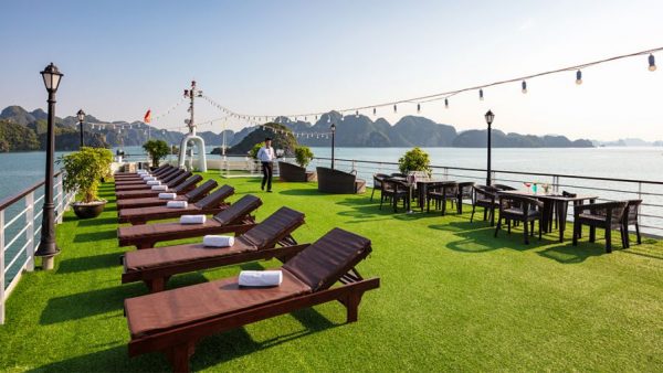 Quý khách tận hưởng cuộc sống về đêm của vịnh Hạ Long từ trên boong tàu. Đắm chìm trong âm nhạc, thưởng thức đồ uống từ quầy bar. Để tham gia trải nghiệm hoạt động câu mực đêm, quý khách vui lòng liên hệ quản lý để được hỗ trợ cung cấp những vật dụng cần thiết.