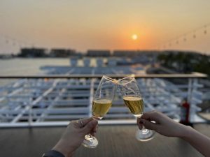Dành thời gian tận hưởng live music trên sundeck hoặc ngắm nhìn hàng ngàn khung cảnh ngoạn mục khi du thuyền đi ngang qua các danh thắng nổi tiếng như đảo Rều, Sun Wheel Hạ Long, Hòn Hang Ma, Hòn Vụng Oản.