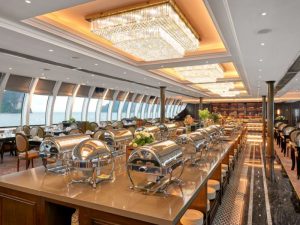 Quý khách lên Du thuyền Paradise Delight – du thuyền nhà hàng cao cấp nhất vịnh Hạ Long phục vụ ẩm thực đa dạng. Hãy bắt đầu hành trình với bữa tiệc Canapé cùng đồ uống chào mừng và âm nhạc acoustic êm ái.
