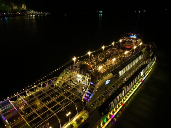 Dành thời gian tận hưởng live music trên sundeck hoặc ngắm nhìn hàng ngàn khung cảnh ngoạn mục khi du thuyền đi ngang qua các danh thắng nổi tiếng như đảo Rều, Sun Wheel Hạ Long, Hòn Hang Ma, Hòn Vụng Oản.