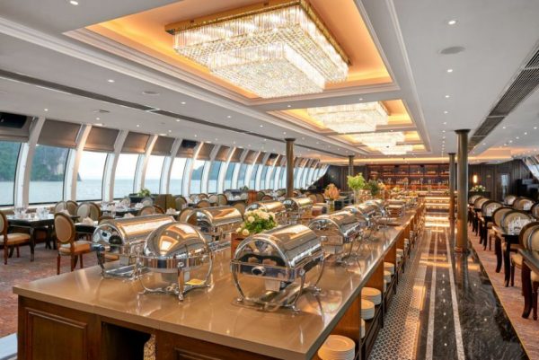 Quý khách lên Du thuyền Paradise Delight – du thuyền nhà hàng cao cấp nhất vịnh Hạ Long phục vụ ẩm thực đa dạng. Hãy bắt đầu hành trình với bữa tiệc Canapé cùng đồ uống chào mừng và âm nhạc acoustic êm ái.