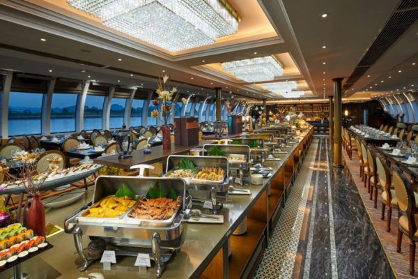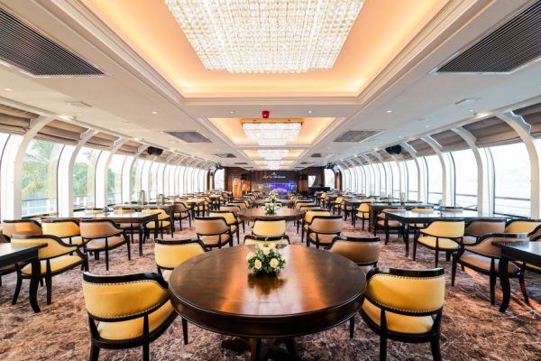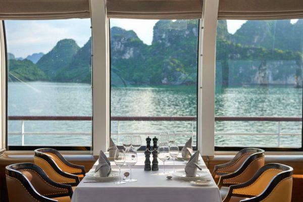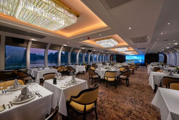 Thưởng thức thực đơn hảo hạng trong khi du thuyền đi ngang qua các danh lam thắng cảnh nổi tiếng như Thiên Cung và Hang Đầu Gỗ. Những nguyên liệu tươi ngon, được chọn lựa và chuẩn bị kỹ lưỡng dưới bàn tay của những đầu bếp tài ba trong không gian nhà hàng sang trọng với tầm nhìn vô tận ra kỳ quan thiên nhiên.