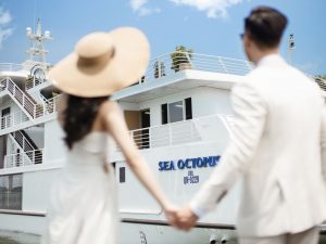 Du thuyền Sea Octopus cập bến tại cảng tàu Quốc tế Hạ Long, kết thúc chuyến hành trình trải nghiệm khám phá vịnh.