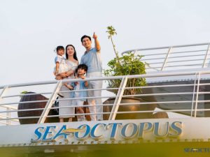Đội ngũ nhân viên của du thuyền Sea Octopus nồng hậu chào đón quý khách tại cảng quốc tế Hạ Long. Đội ngũ nhân viên hướng dẫn quý khách lên tàu. Quý khách được tiếp đón với Hòa tấu Trống hội và thưởng thức nước uống chào mừng và trái cây trong thời gian theo dõi video thông tin giới thiệu về du thuyền, các lưu ý an toàn và bảo vệ môi trường.