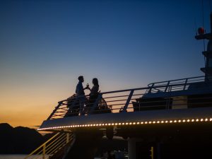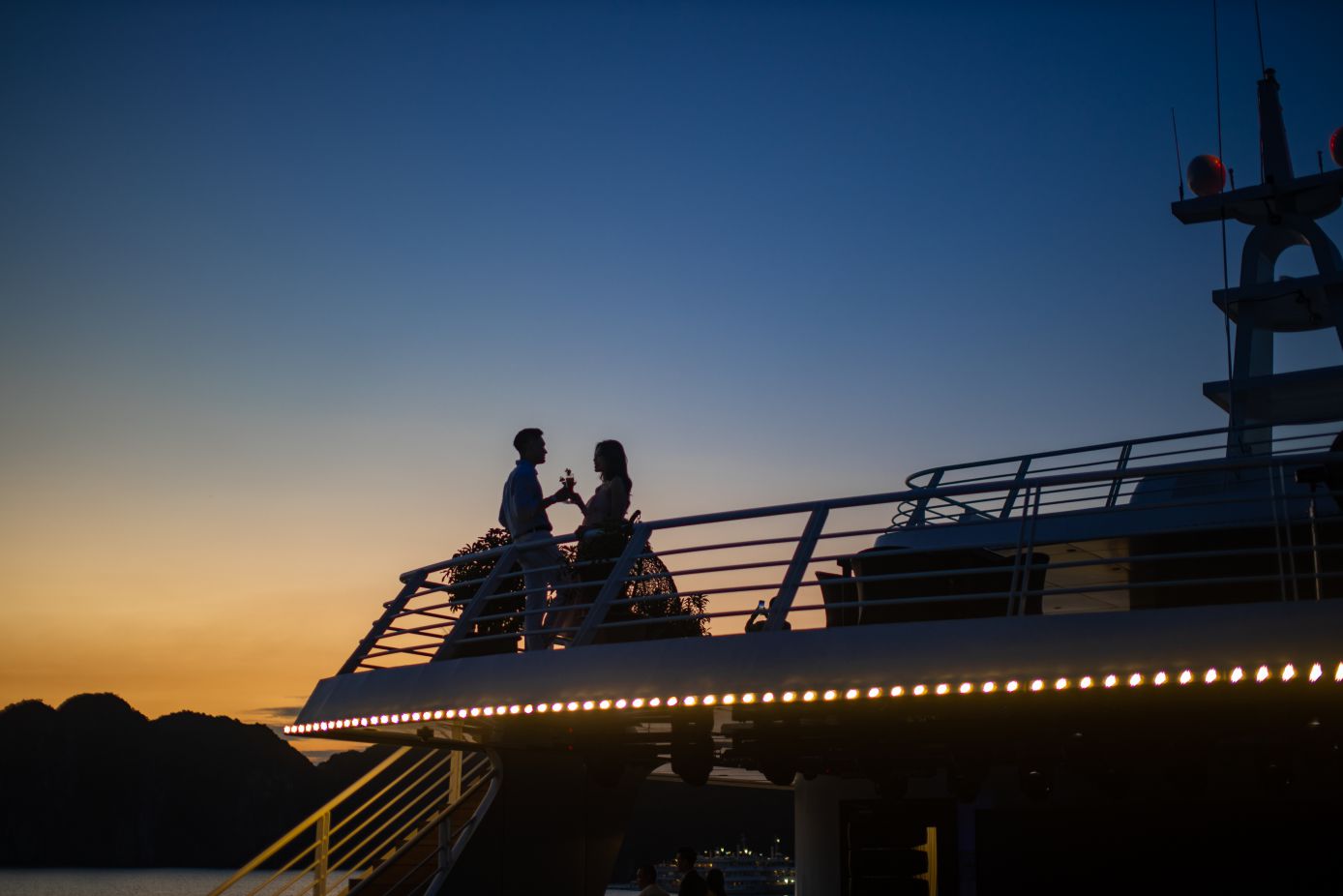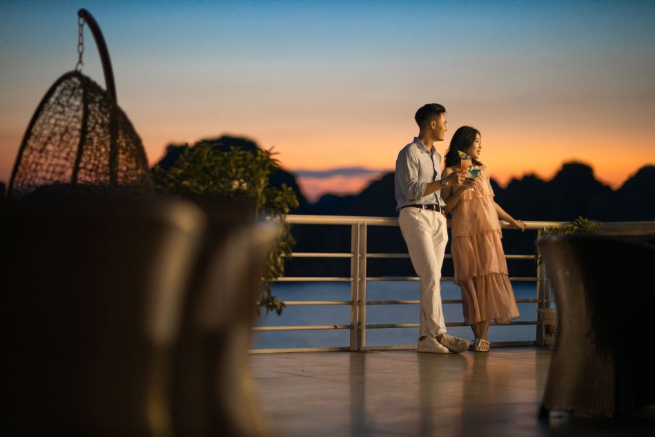 - Thưởng thức giai điệu hòa tầu violin và guitar lãng mạn khi chiêm ngưỡng view cực đỉnh Hạ Long về đêm