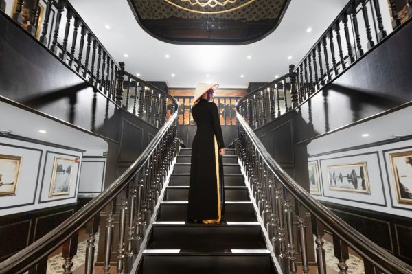 Đội ngũ nhân viên hướng dẫn quý khách lên tàu. Quý khách tham gia chương trình chào mừng với Hòa tấu Trống hội, thưởng thức nước uống chào mừng và trái cây trong thời gian theo dõi video thông tin giới thiệu về du thuyền, các lưu ý an toàn và bảo vệ môi trường.
