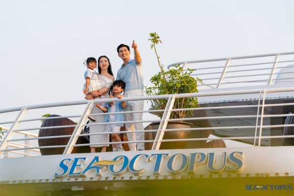 Đội ngũ nhân viên của du thuyền Sea Octopus nồng hậu chào đón quý khách tại cảng quốc tế Hạ Long. Đội ngũ nhân viên hướng dẫn quý khách lên tàu. Quý khách được tiếp đón với Hòa tấu Trống hội và thưởng thức nước uống chào mừng và trái cây trong thời gian theo dõi video thông tin giới thiệu về du thuyền, các lưu ý an toàn và bảo vệ môi trường.
