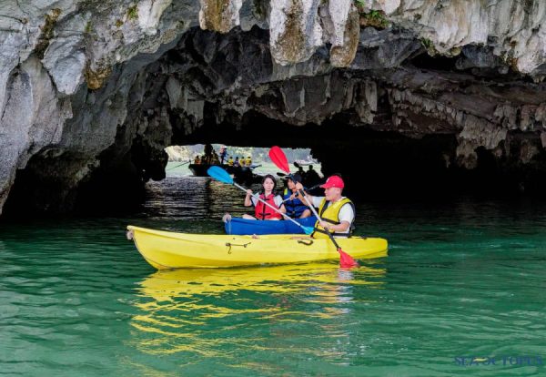 - Khám phá hang Luồn bằng thuyền nan hoặc chèo kayak. Hang Luồn là một điểm đến tuyệt đẹp tại vịnh Hạ Long, từ cửa hang dẫn vào một giếng trời bao bởi các vách núi đá dựng đứng, bốn mùa nước trong xanh phẳng lặng như một tấm gương.