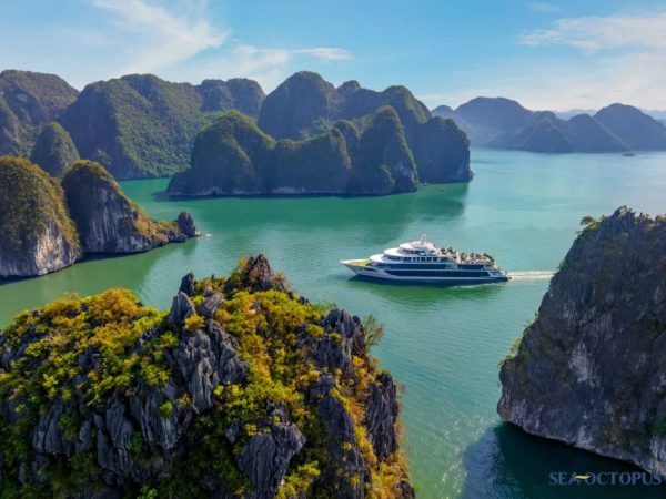 Du thuyền Sea Octopus rời bến, quý khách sẽ được ngắm nhìn khung cảnh hùng vĩ của vùng đất rồng thiêng trong khi du thuyền di chuyển Vịnh