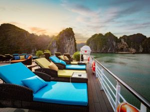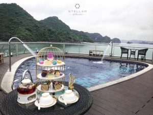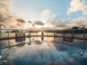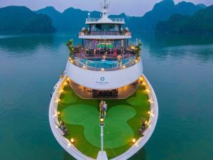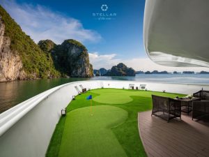 - Bể bơi bốn mùa, sân mini golf, phòng xông hơi, phòng tập Gym miễn phí trên du thuyền.