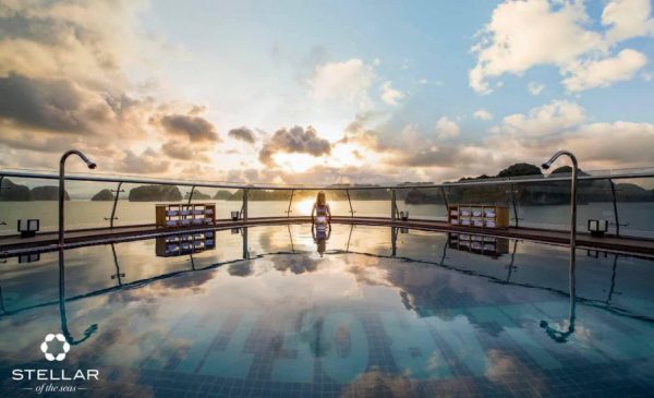 - Bể bơi bốn mùa, sân mini golf, phòng xông hơi, phòng tập Gym miễn phí trên du thuyền.