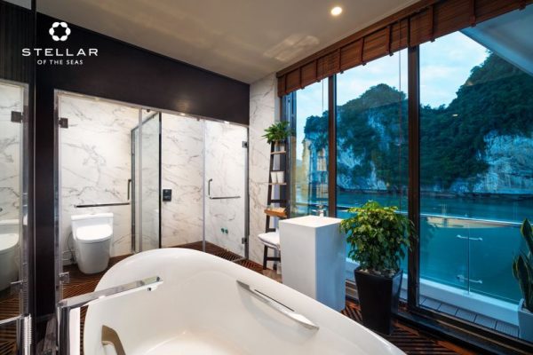 - Phòng nghỉ trên du thuyền sang trọng tiêu chuẩn 5 sao.