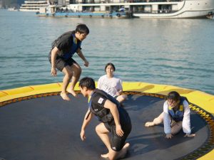 Quý khách có thể vui đùa trên phao nổi, cầu trượt, bơi lội, hoặc ở lại trên thuyền để thư giãn dưới cảnh đẹp tuyệt vời của Vịnh Lan Hạ. Bạn sẽ tận hưởng khung cảnh tuyệt đẹp và chiêm ngưỡng vẻ đẹp tuyệt vời của kỳ quan thiên nhiên thế giới này.