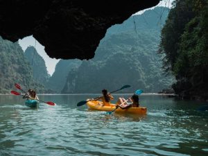 14:00 – 14:45: Chèo thuyền kayak hoặc ngồi thuyền Nan tham quan hang Sáng