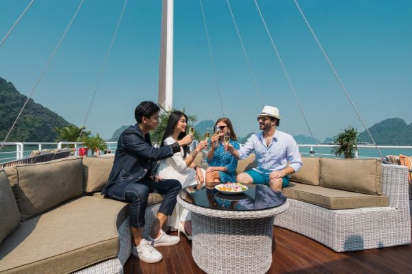 Quý khách có thể vui đùa trên phao nổi, cầu trượt, bơi lội, hoặc ở lại trên thuyền để thư giãn dưới cảnh đẹp tuyệt vời của Vịnh Lan Hạ. Bạn sẽ tận hưởng khung cảnh tuyệt đẹp và chiêm ngưỡng vẻ đẹp tuyệt vời của kỳ quan thiên nhiên thế giới này.