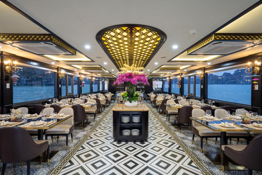 ✓ Cơ sở vật chất hiện đại, boong tàu sang trọng, điều hòa, Tivi, Internet (Wifi) trong khu vực nhà hàng.