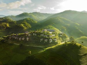 Thiên đường nghỉ dưỡng Garrya Mù Cang Chải nép mình e lệ giữa vẻ đẹp ngoạn mục của đất trời Tây Bắc, bao quanh bởi thiên nhiên hùng vĩ cùng những thửa ruộng bậc thang được sáng tạo từ đôi bàn tay khéo léo của đồng bào người Mông sinh sống tại khu vực này.