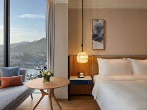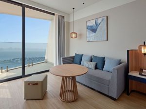 Khách sạn gồm 163 phòng nghỉ rộng rãi, thiết kế hiện đại với ban công riêng, tầm nhìn hướng ra Vịnh Hạ Long hoặc thành phố. Mỗi phòng đều được trang bị TV thông minh 50 inch, sofa giường Cozy Corner, bàn làm việc, điều hòa trung tâm và Wi-Fi tốc độ cao. Không gian phòng được phân chia hợp lý, tạo cảm giác thoải mái cho cả nghỉ ngơi và làm việc.