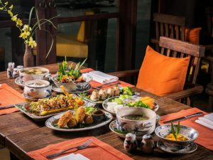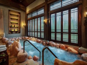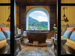 Khu Tĩnh dưỡng được thiết kế bởi KTS nổi tiếng thế giới Bill Bensley và được hoàn thiện từ những vật liệu và phương pháp xây dựng truyền thống bởi chính các nghệ nhân người Việt, tỉ mỉ đến từng chi tiết. Trong mỗi phòng nghỉ, các chất liệu trang trí độc đáo đến bất ngờ như vỏ bao bố làm bằng sợi đay, tường trấu, cửa gỗ then cài kiểu xưa và sàn nhà làm từ loại gốm địa phương gần như đã thất truyền… càng tăng thêm sự chân thực và gần gũi, giúp trú khách đắm chìm trong không gian cổ kính mang phong vị thiền