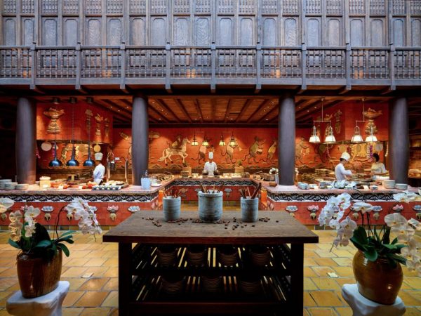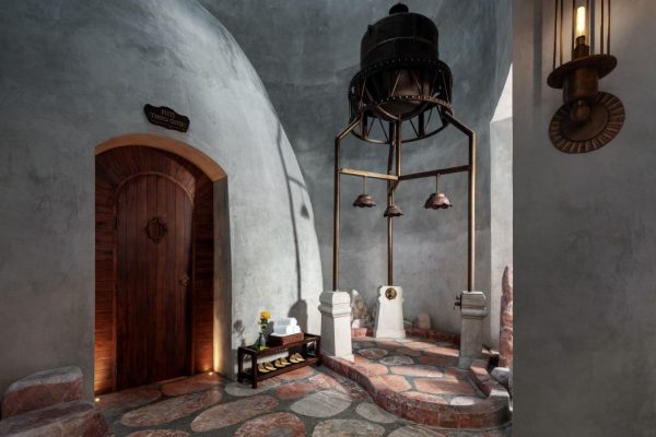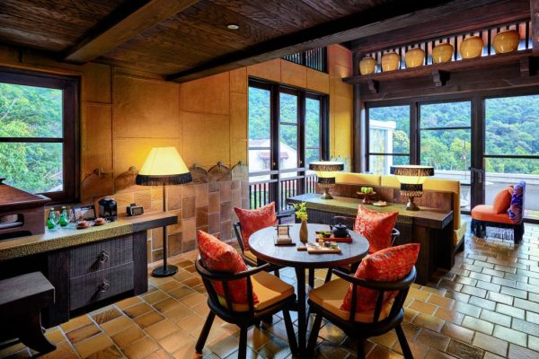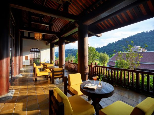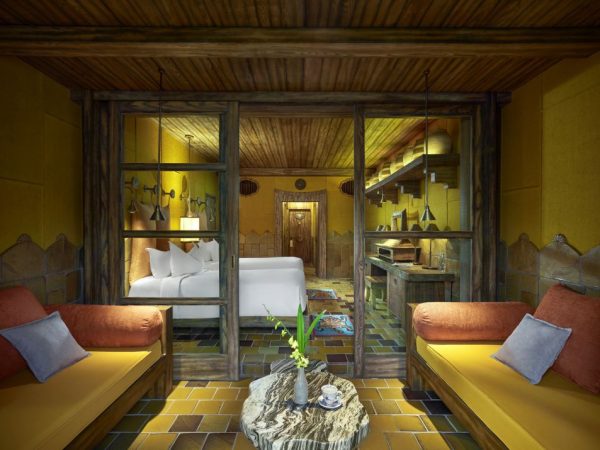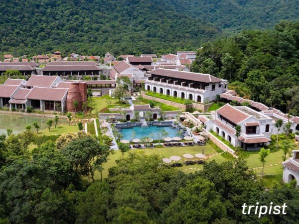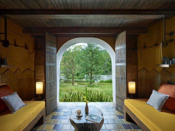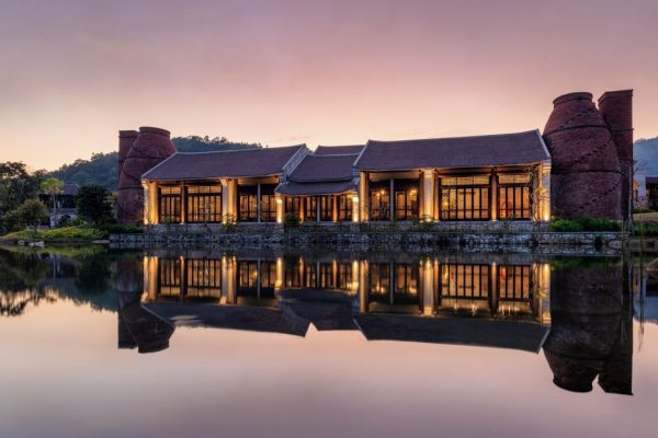 Khu Tĩnh dưỡng được thiết kế bởi KTS nổi tiếng thế giới Bill Bensley và được hoàn thiện từ những vật liệu và phương pháp xây dựng truyền thống bởi chính các nghệ nhân người Việt, tỉ mỉ đến từng chi tiết. Trong mỗi phòng nghỉ, các chất liệu trang trí độc đáo đến bất ngờ như vỏ bao bố làm bằng sợi đay, tường trấu, cửa gỗ then cài kiểu xưa và sàn nhà làm từ loại gốm địa phương gần như đã thất truyền… càng tăng thêm sự chân thực và gần gũi, giúp trú khách đắm chìm trong không gian cổ kính mang phong vị thiền