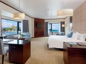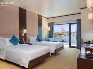 Nhìn ra Vịnh Hạ Long và cầu Bãi Cháy, khách sạn Wyndham Legend Ha Long được thiết kế với 450 phòng hạng sang và rộng rãi, có ban công riêng hoặc cửa sổ lớn nhìn toàn cảnh. Nội thất theo phong cách hiện đại và một số phòng khách mang âm hưởng kiến trúc tân cổ điển châu Âu.