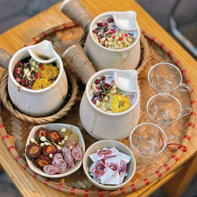 Xu hướng này được đánh giá là gây tò mò vì chiếc thố, niêu đất đun trà sữa. Bên cạnh đó là nguyên liệu có hoa khô sặc sỡ tô điểm cho thức uống thêm phần bắt mắt.