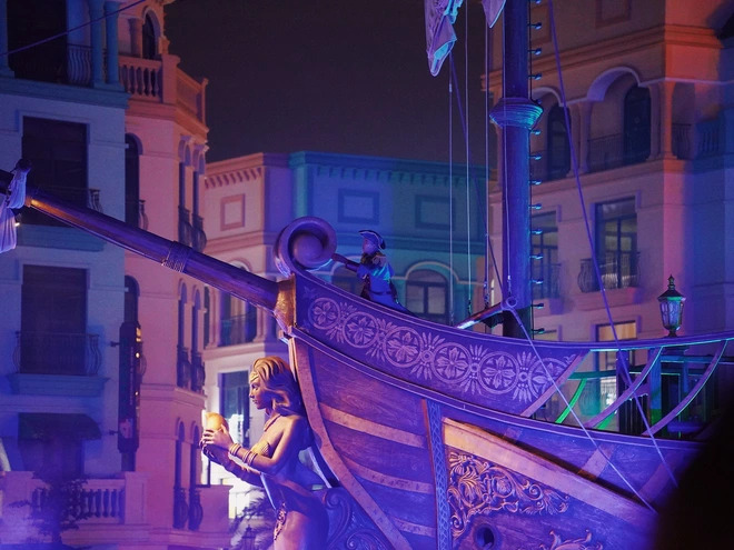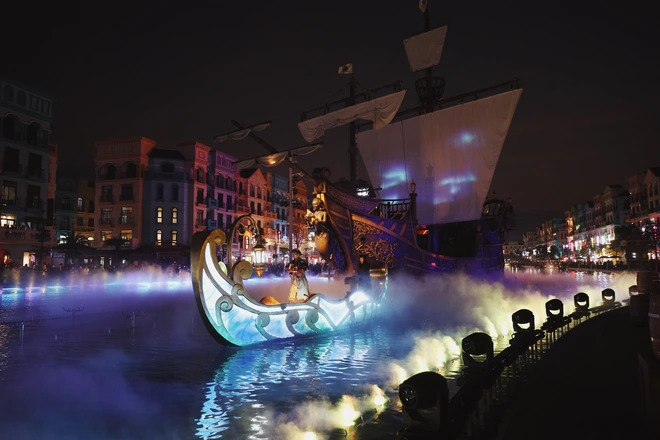Ngay khi ánh đèn laser chiếu loang loáng trên mặt hồ và khắp các bức tường đầy màu sắc của những ngôi nhà phong cách Địa Trung Hải, du khách sẽ rất bất ngờ khi thấy con thuyền khổng lồ phát sáng, cùng với đó là sự xuất hiện của các nghệ sĩ trong những bộ trang phục cầu kỳ đưa tất cả bước vào một châu Âu mơ mộng và huyền diệu…